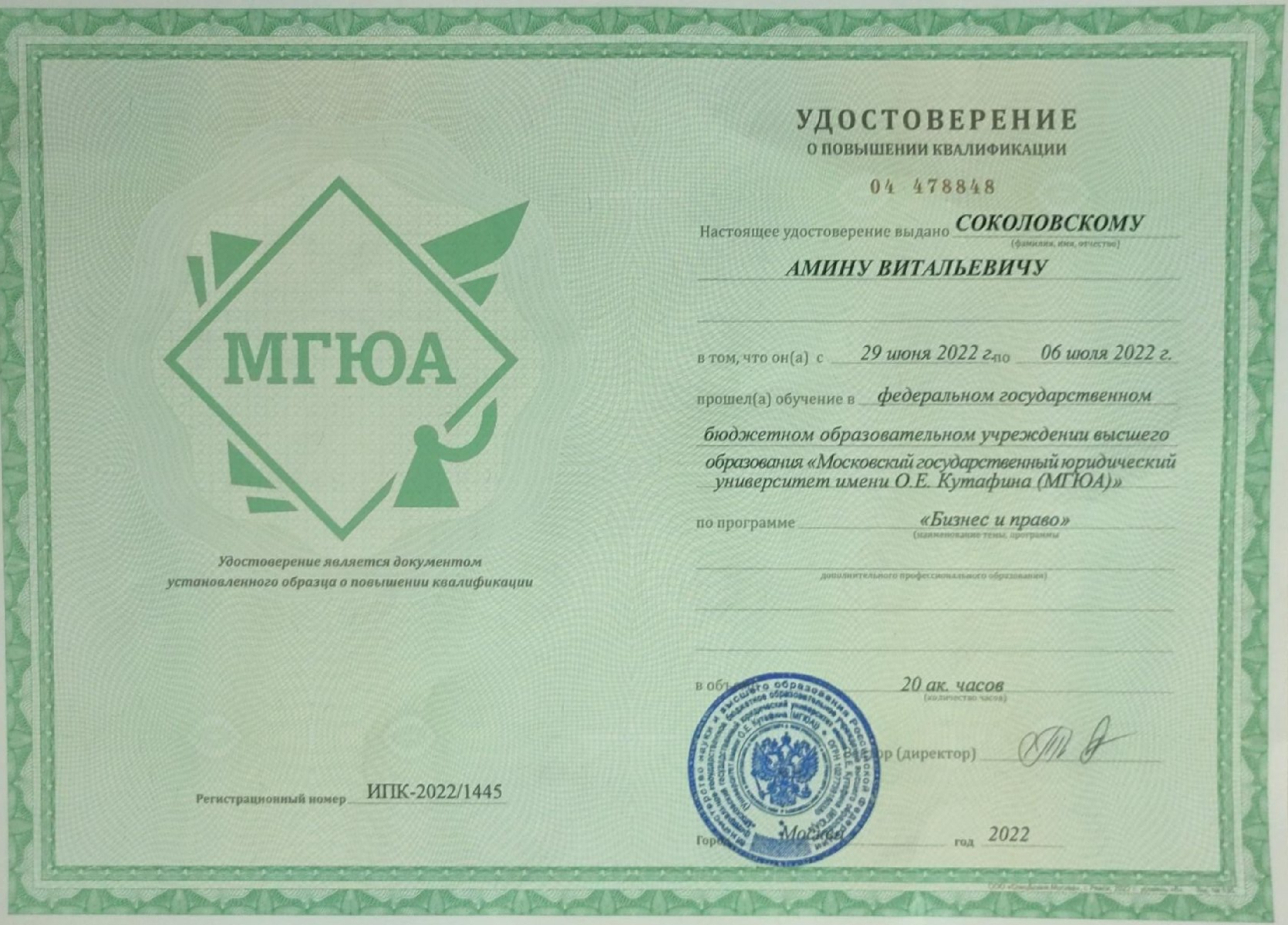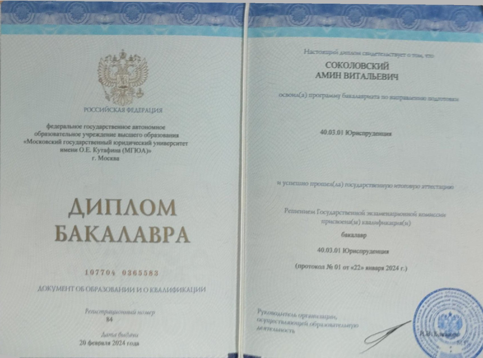 МГЮА — Московский государственный юридический университет имени О.Е. Кутафина — Юриспруденция — Москва Бакалавр
