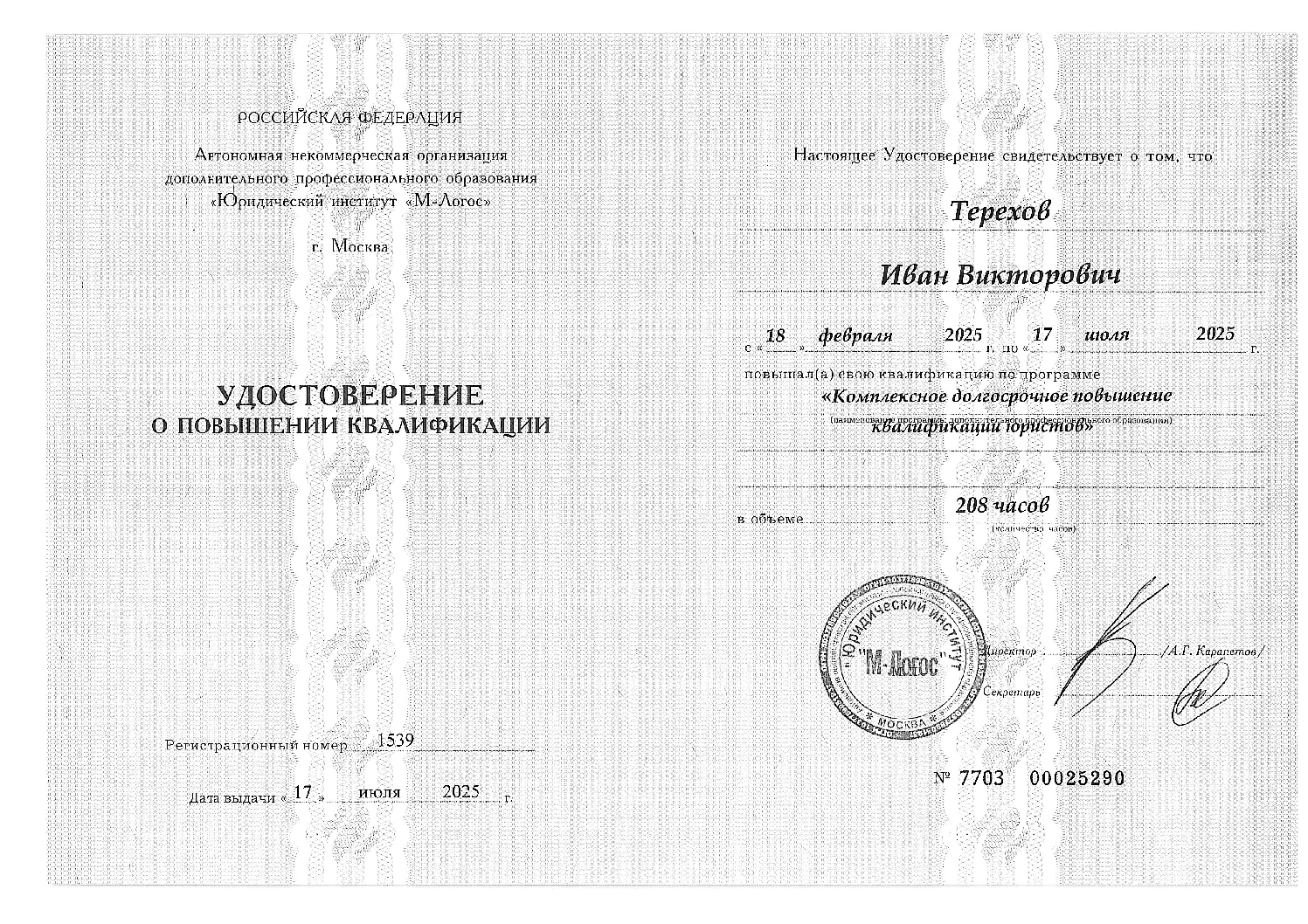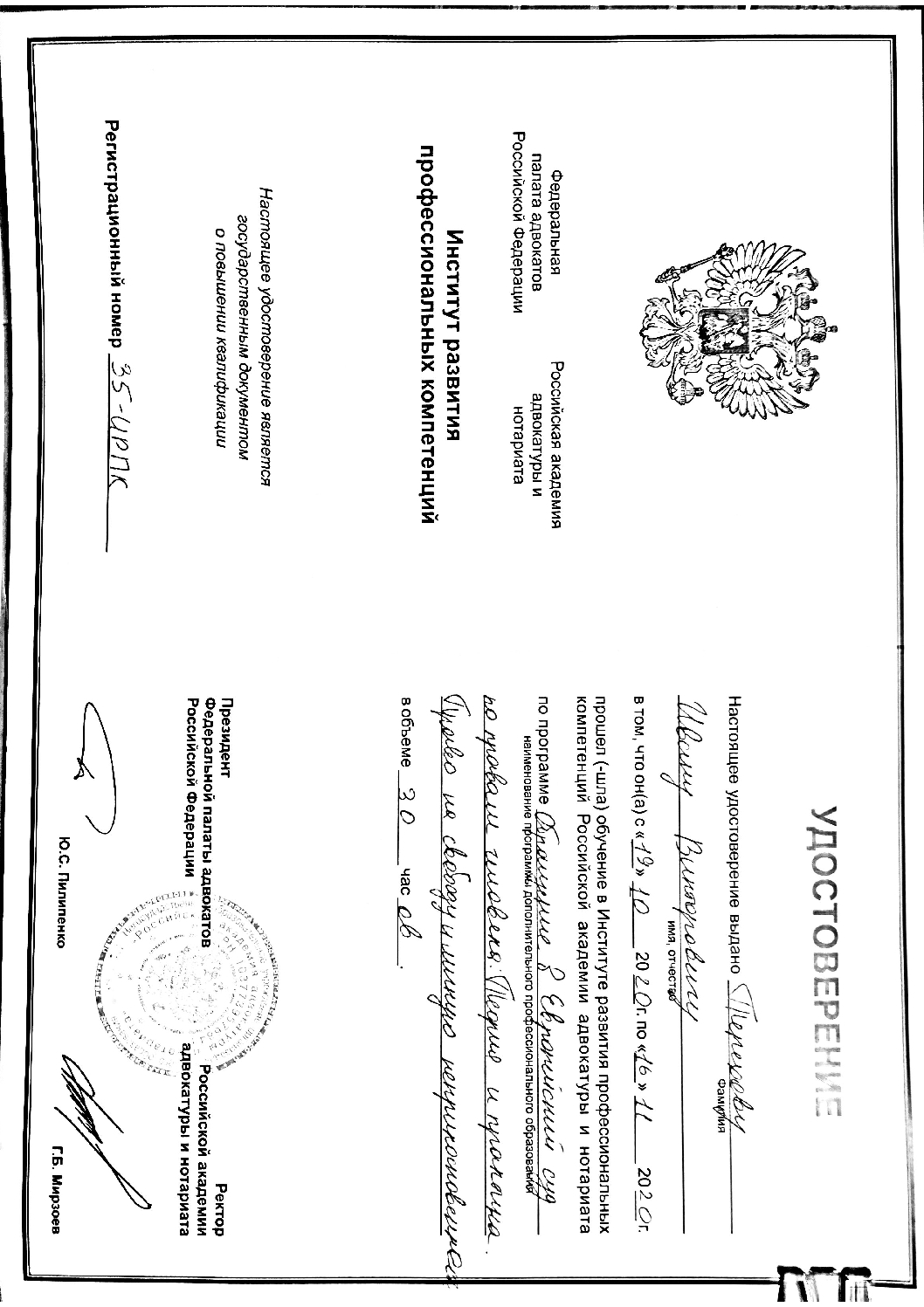 Я адвокат, член Адвокатской палаты г.Москвы, регистрационный №77/15578 (Московской коллегии адвокатов «Кятова, Клячковский и партнёры»).