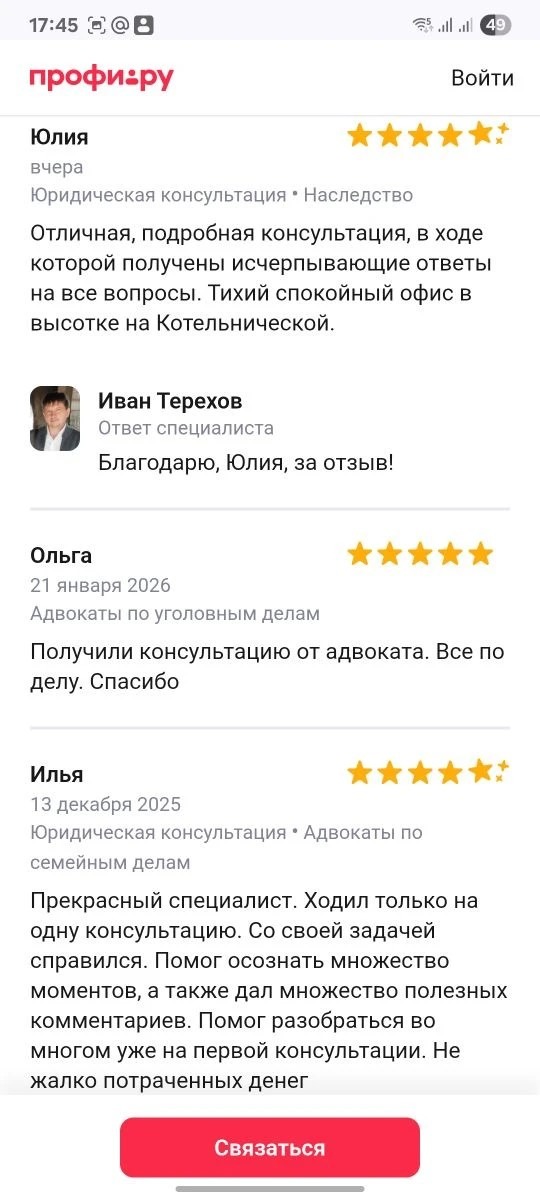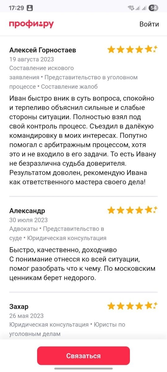 Рекомендую данного адвоката, помог быстро разобраться с интересующим вопросом. Впредь обращусь снова если потребуется помощь.