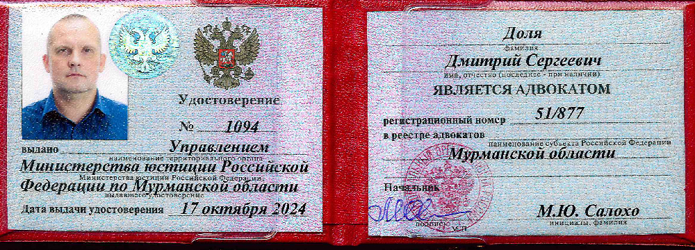 Адвокат. Стаж с 2004 года. Председатель МЦКА. Все виды юридической помощи. Мурманск,Область. Возможен выезд в другие регионы. КОНСУЛЬТАЦИИ В ЛИЧНЫХ СООБЩЕНИЯХ - ПЛАТНЫЕ.