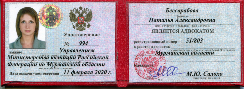 Адвокат адвокатской палаты Мурманской области по гражданским и уголовным...