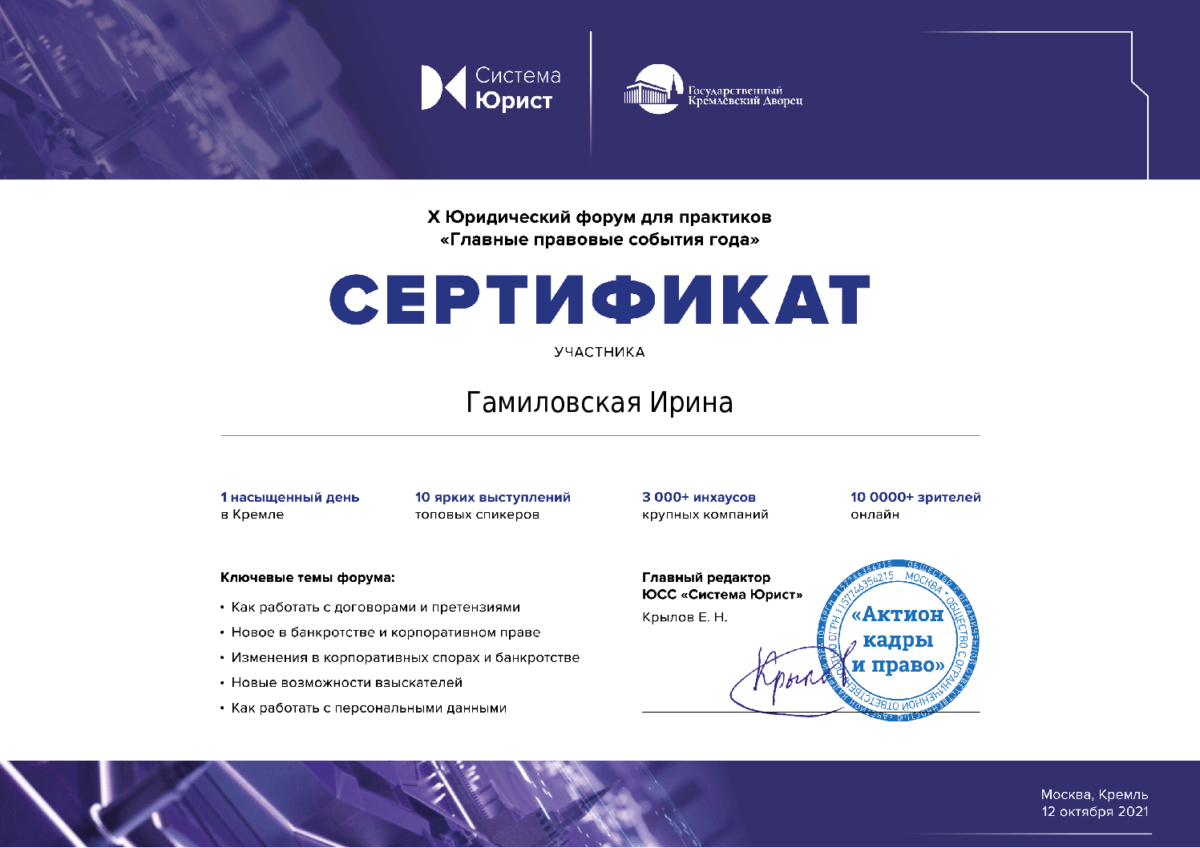 Ориентируюсь в законодательстве и умею находить решения в самых непростых задачах.