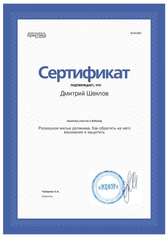 Здравствуйте, меня зовут Константин- юрист, член Ассоциации юристов России. в 2024 году успешно прошел курс повышения квалификации по программе «налогового юриста» ✅Защищаю права в налоговых, кредитных, трудовых, корпоративных, договорных спорах. ✅Имею 4-летний опыт в сфере защиты прав потребителей. ✅Помогаю призывникам и военнослужащим по контракту, по мобилизации . ✅Сопровождаю деятельность юридических лиц по договору в том числе при оценке налоговых рисков. Почему ко мне обращаются за защитой прав? Любую проблему разбираю, прежде всего, на основании сложившейся судебной практики. Анализирую перспективы, составляю план действи, в том числе,оцениваю налоговые риски сделки и доступно объясняю Вам.
