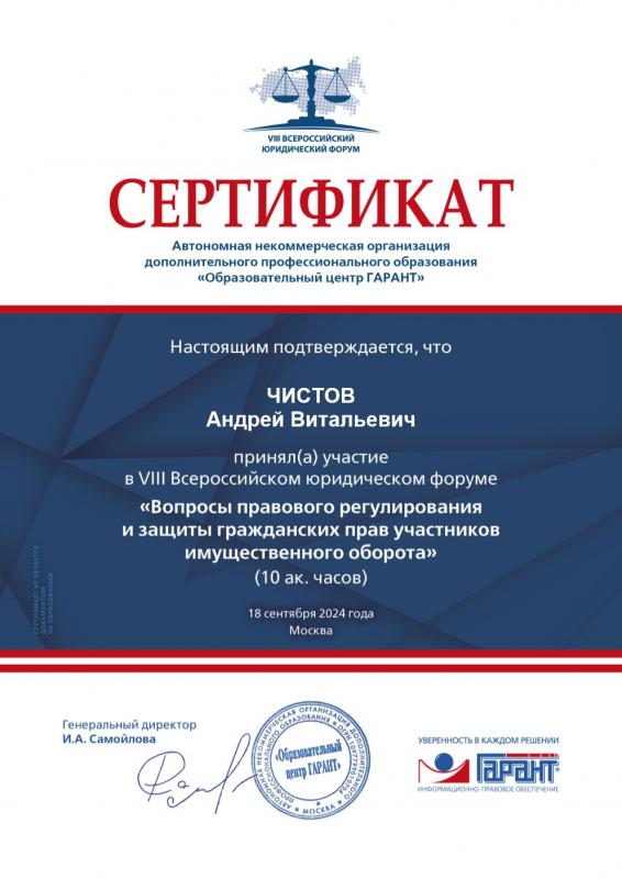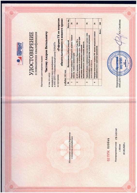 Образование: ННГУ им. Н.И. Лобачевского – высшее юридическое образование, РАНХиГС - высшее финансовое образование. Работа в КФ «Прецедент» с 2005 года, общий стаж юридической практики на 2024год– 22 года. Специализация: 1) судебное представительство во всех отраслях гражданского законодательства (обжалование действий/бездействий, корпоративно право, защита интеллектуальной собственности, поставки для государственных и муниципальных нужд, налоговые, трудовые, семейные споры и т.д.); 2) административные процедуры части инвестиционной деятельности и земельного законодательства .