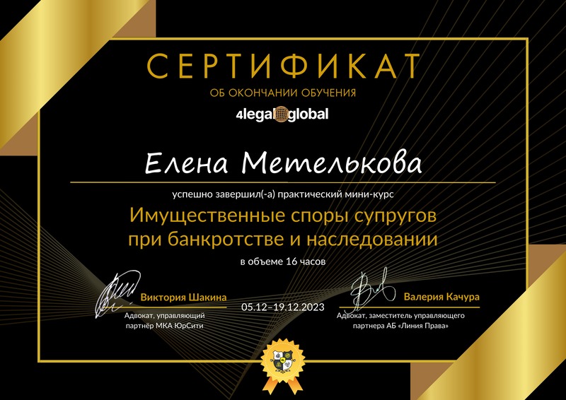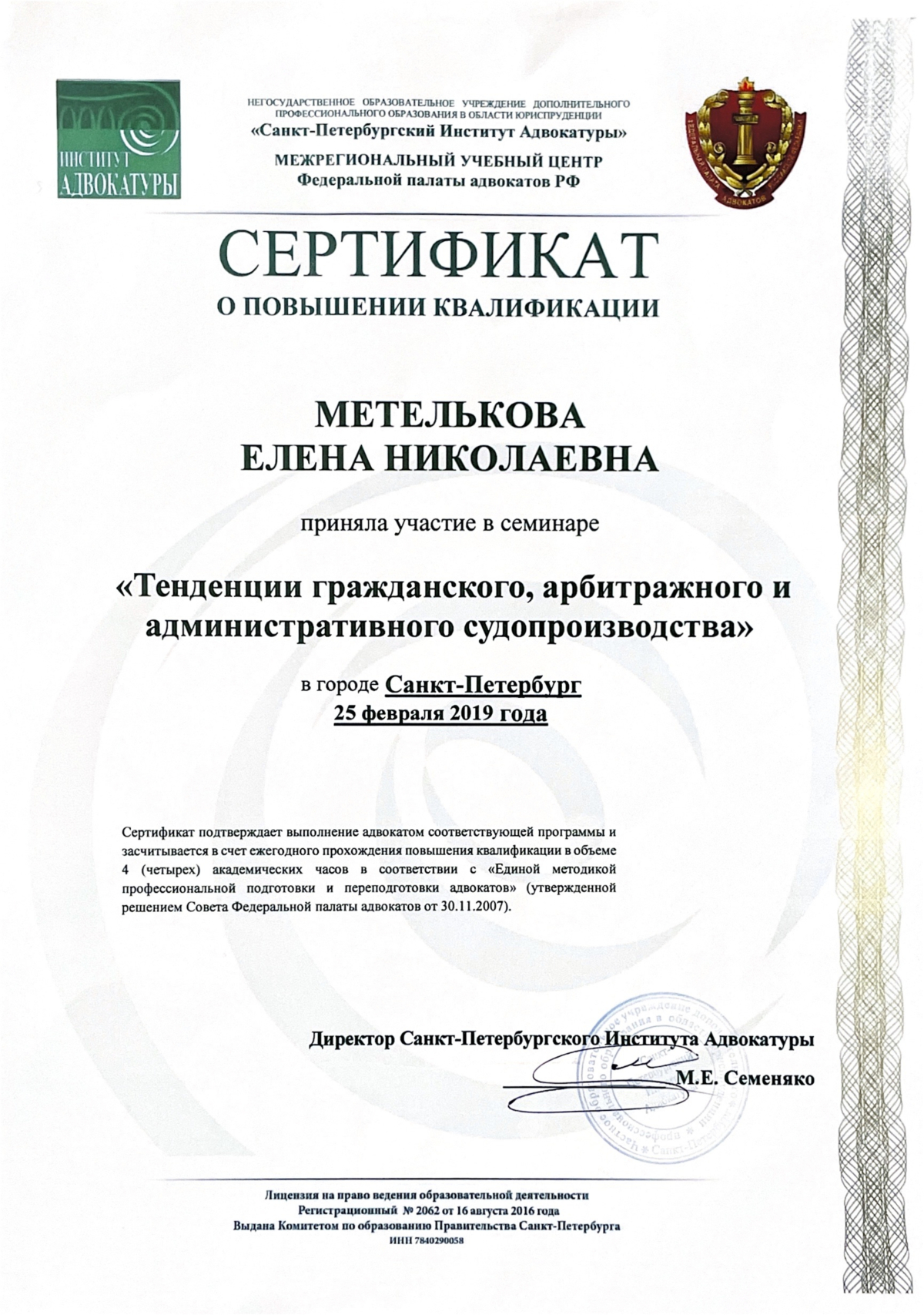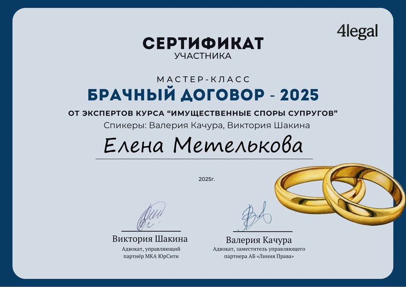 Меня зовут Елена Метелькова, я юрист с 15-летним стажем работы, имею статус адвоката.