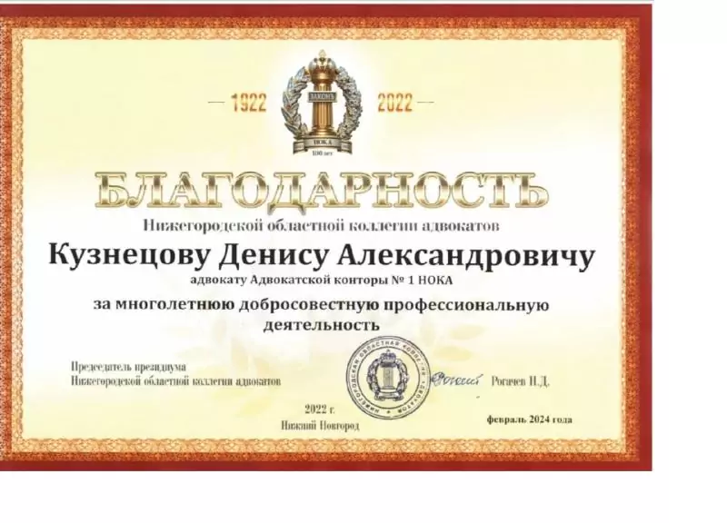 Хочется сказать слова благодарности адвокату Кузнецову Денису Александровичу. Очень грамотный, компетентный специалист. 1,5 года вел на... Читать далее