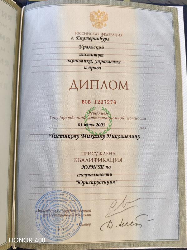 Здравствуйте! Меня зовут Михаил Чистяков, я юрист по гражданским делам с высшим юридическим образованием. Профессионально оказываю юридические услуги по следующим направлениям: – Споры о взыскании ущерба, причиненного в результате дорожно-транспортных происшествий – Споры о возмещении ущерба, причиненного имуществу вследствие залива или пожара – Споры со страховыми компаниями по всем видам имущественного страхования Имею значительный опыт в разрешении правовых вопросов и судебном представительстве по этим категориям дел. Моя главная цель — добиться положительного судебного решения в вашу пользу. Ваши личные данные и интересы будут надежно защищены на всех этапах судебного процесса.