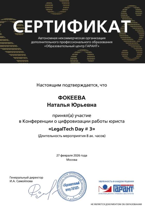 Я являюсь юристом с широким спектром специализаций и обширным опытом в различных областях права, включая арбитражное, наследственное, жилищное, семейное, трудовое, земельное право, а также защиту прав потребителей и автомобильное право. Являюсь членом регионального союза судебных экспертов. Моя работа направлена на оказание профессиональной правовой помощи, основываясь на принципах профессионализма, ответственности, вежливости, порядочности и конфиденциальности. Я стремлюсь к высокой работоспособности, проявляю упорство, нахожу нестандартные решения и индивидуально подхожу к каждому клиенту. Основное направление моей деятельности — юридическая помощь организациям, предпринимателям и отдельным гражданам. Моя стратегическая цель — защита прав и законных интересов клиентов. Я объективен, честен и всегда стремлюсь найти истину и защитить её.