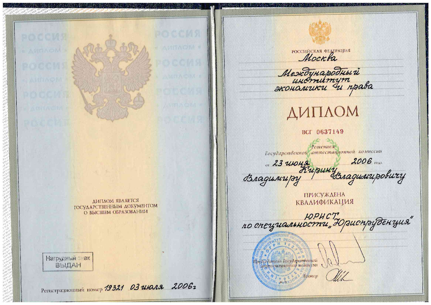 Я получил высшее образование в Международном Институте Экономики и Права....