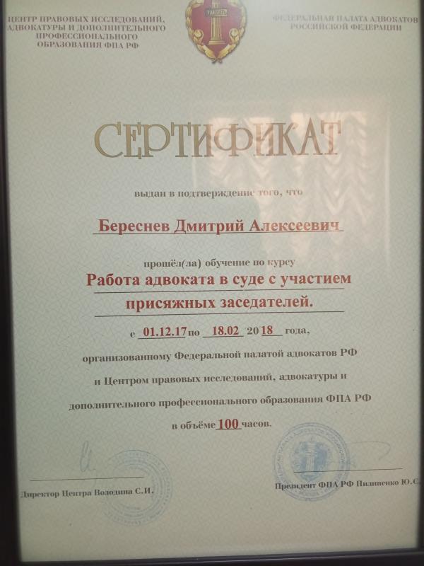 Список судебных дел в карточке адвоката может быть не полным и зависит от того, указан ли адвокат Береснев Дмитрий Алексеевич в деле или нет