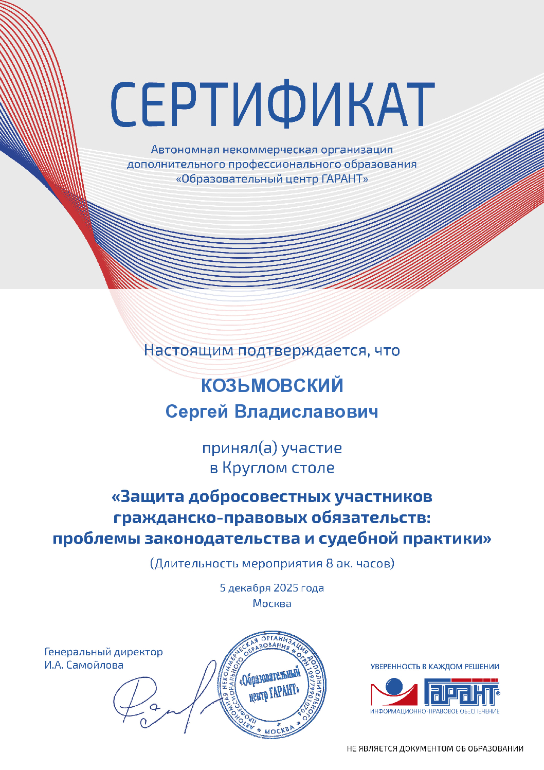 Здравствуйте! Я юрист с 18-летним опытом работы. Обладаю двумя высшими образованиями: окончил Исторический факультет Томского Государственного Университета в 2001 году и Юридический факультет того же университета в 2007 году. Мой профессиональный путь включает работу в различных организациях, как частных, так и государственных. Я работал юрисконсультом в ФКУ «Главное бюро медико-социальной экспертизы по Томской области» и юристом в управлении Росреестра по Томской области. С 2011 года, после переезда в Новороссийск, занимаюсь частной практикой. В 2016 году возглавлял правовое управление администрации г. Новороссийска. На данный момент я специализируюсь на банкротстве физических лиц, представлении интересов в судах, земельных спорах, бракоразводных процессах, наследственных спорах, защите прав потребителей, трудовых спорах, взыскании долгов и оформлении сделок с недвижимостью.