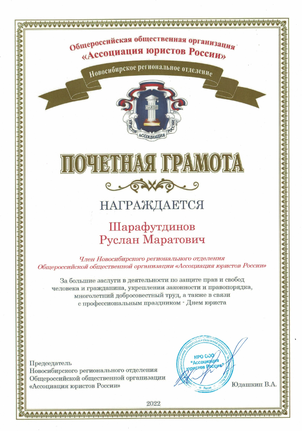 Адвокат с успешной практикой более 15 лет, рег. 54/1609 в реестре адвокатов РФ, член Адвокатской палаты Новосибирской области.