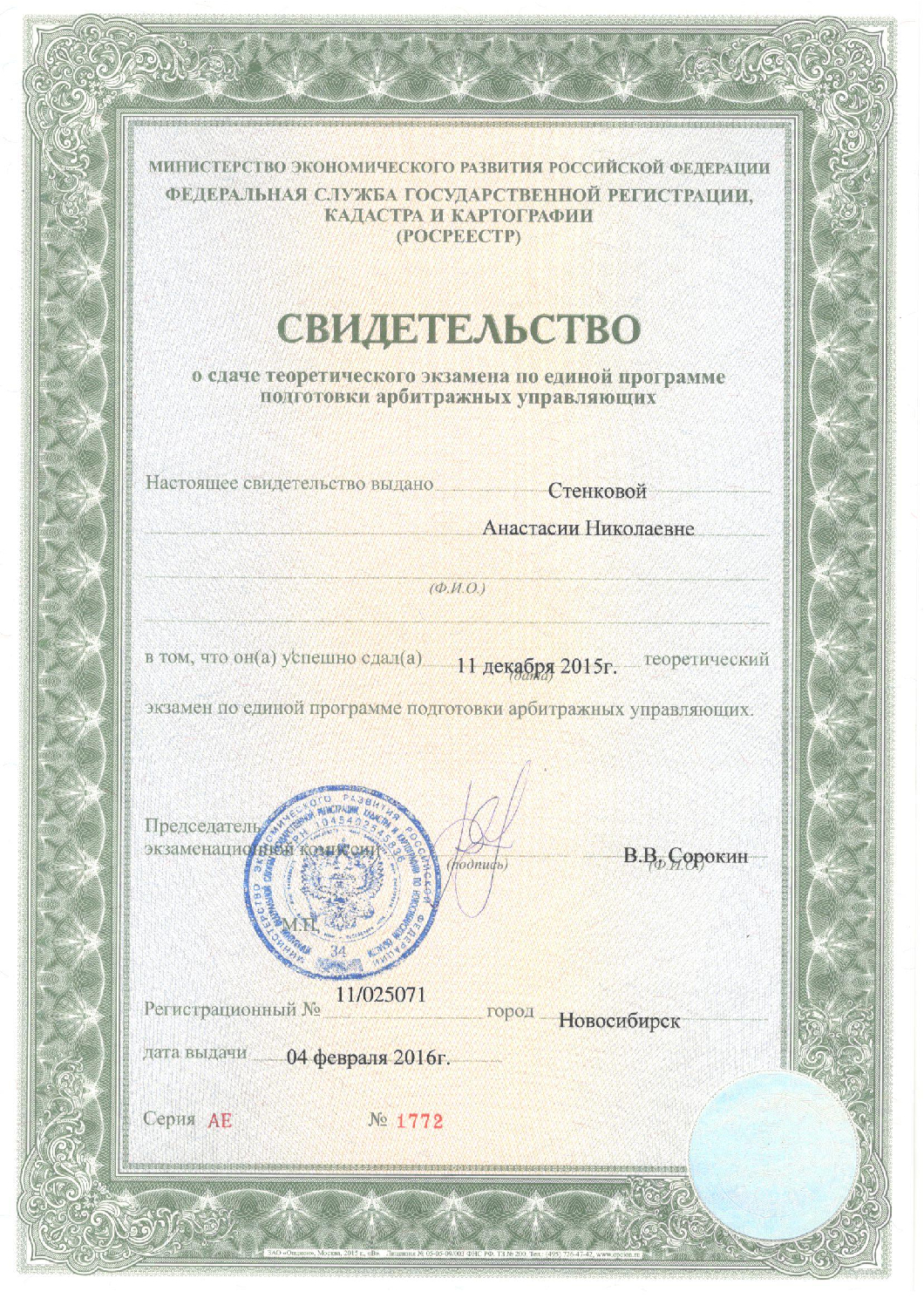 Стенковая Анастасия Николаевна, юрист, индивидуальный предприниматель (ИНН 540232579644, ОКВЭД 69.10 - деятельность в области права) Год рождения: 1981 Год начала судебной практики: 2003 Образование: основное: высшее юридическое (1998-2003), специализация “гражданское право”, специальность “юрист” дополнительное образование: единая программа подготовки арбитражных управляющих (2015г.), специальность “арбитражный управляющий”, с 2015г. - обязательные ежегодные курсы повышения квалификации. Специализация (гражданско-правовая). Споры, связанные: - с применением закона о банкротстве; - с взысканием задолженности; - с признанием прав на имущество, истребованием имущества от третьих лиц; - с заключением, исполнением, прекращением договоров; - с применением штрафных санкций и обеспечительных мер; - иные споры, связанные с защитой имущественных прав