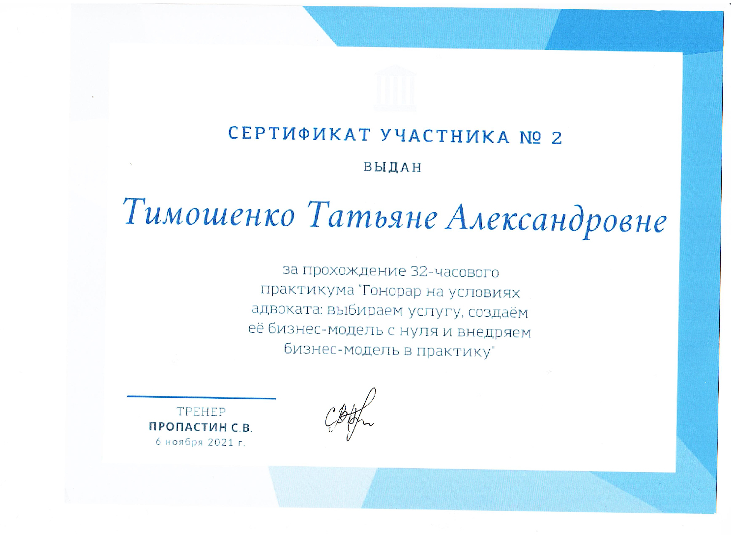 Адвокат НО «Седьмая коллегия адвокатов Омской области», регистрационный номер 55/1554 в реестре адвокатов Омской области.