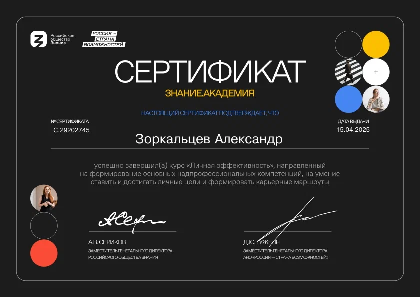 - Настойчивость и стратегическое мышление: не ограничиваюсь шаблонными решениями, ищу наиболее эффективный путь к цели.