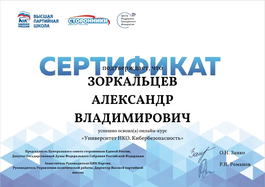 Советник государственной гражданской службы Российской Федерации 3 класса (в отставке).