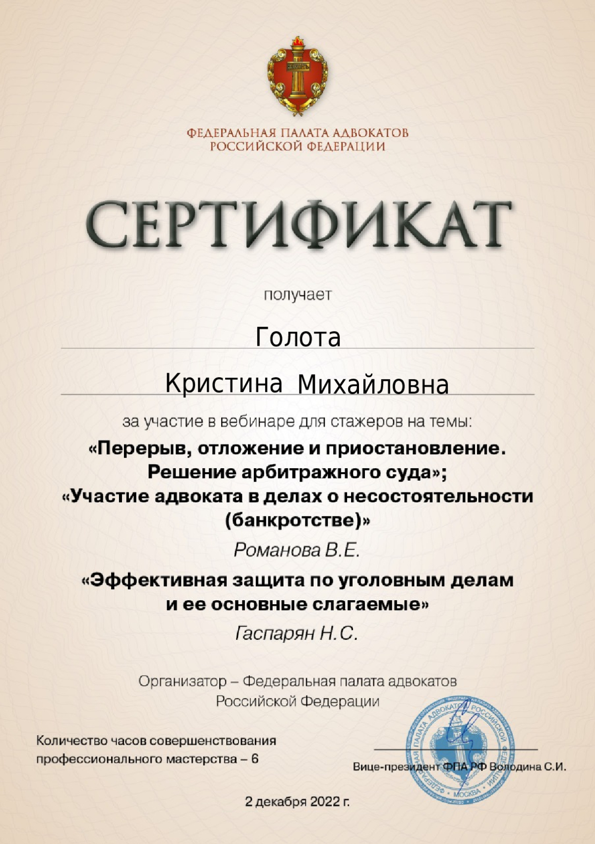 Кандидат юридических наук, доцент кафедры уголовного права и процесса Сибирского юридического университета, адвокат Омской областной коллегии адвокатов.