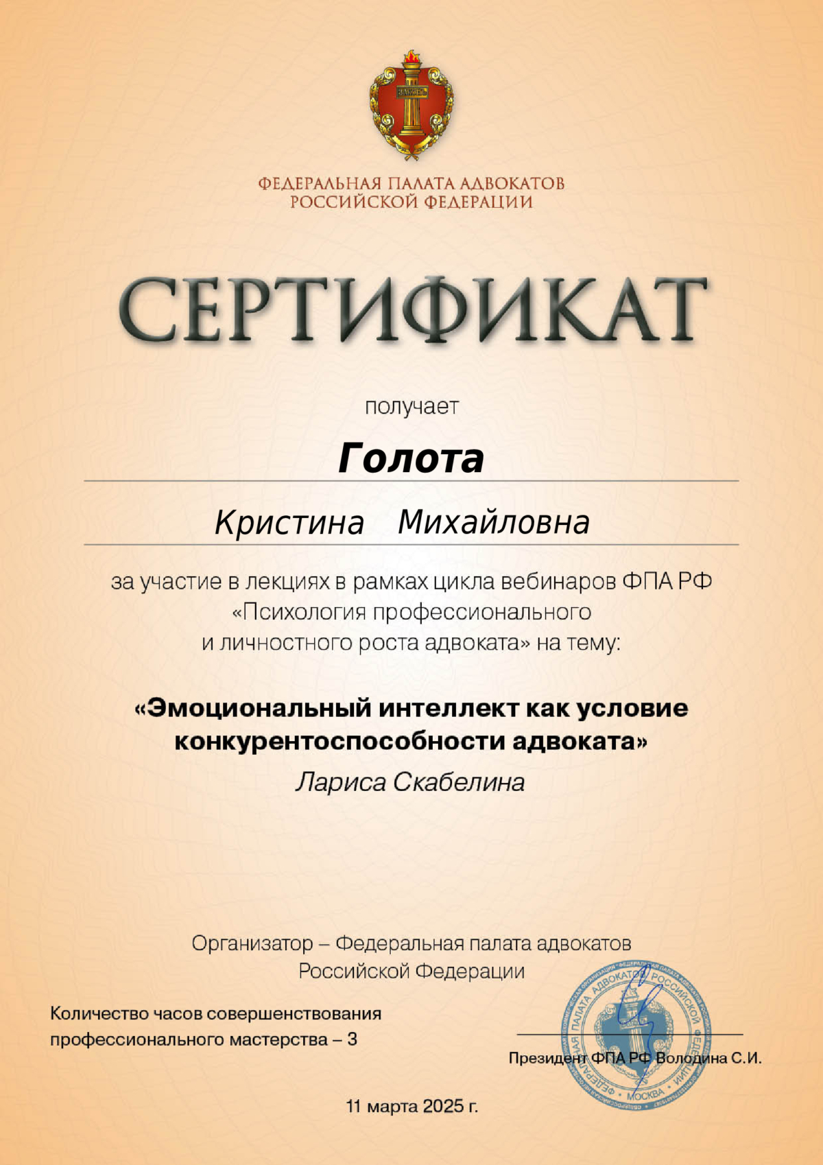 - Доступность: стремлюсь к тому, чтобы правовая помощь была понятной и своевременной для клиента.