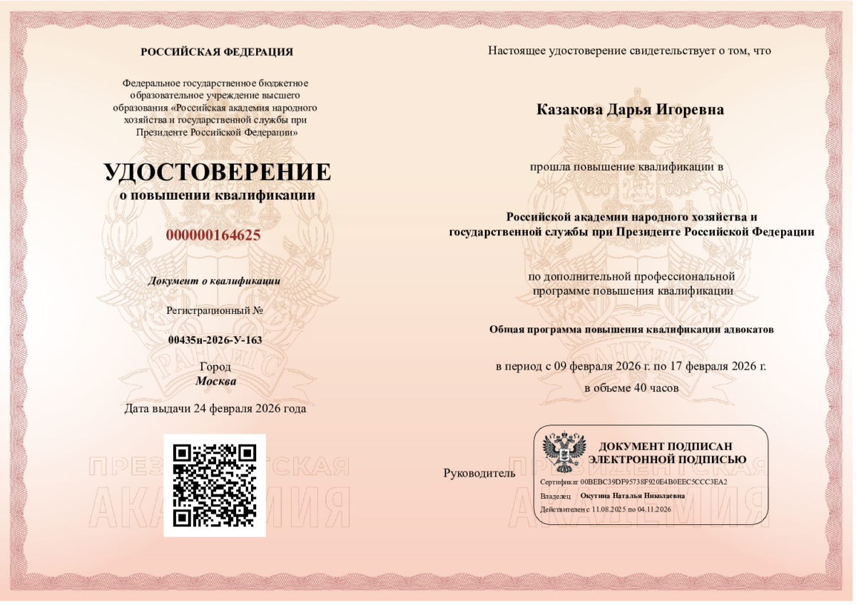 Квалифицированная юридическая помощь с 2006 года. Внимательно и ответственно решаю задачи каждого клиента. Более 20 лет опыта и успешное ведение дел любой сложности.