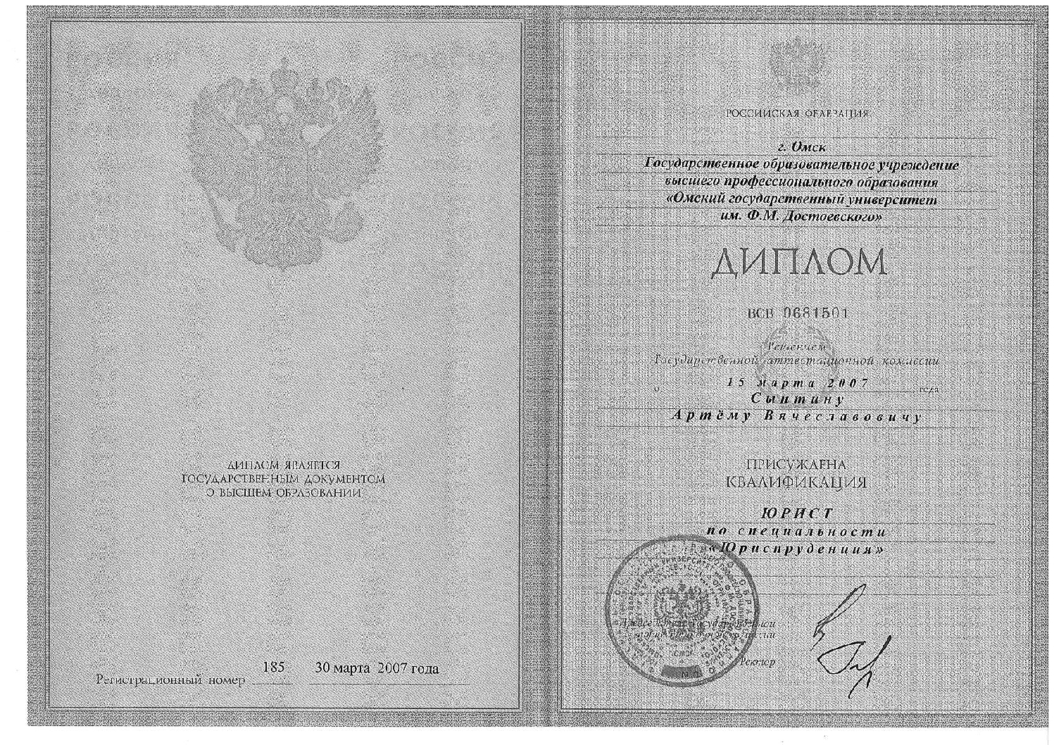 ОмГУ им Ф.М. Достоевского — юридический — Ленск Специалист