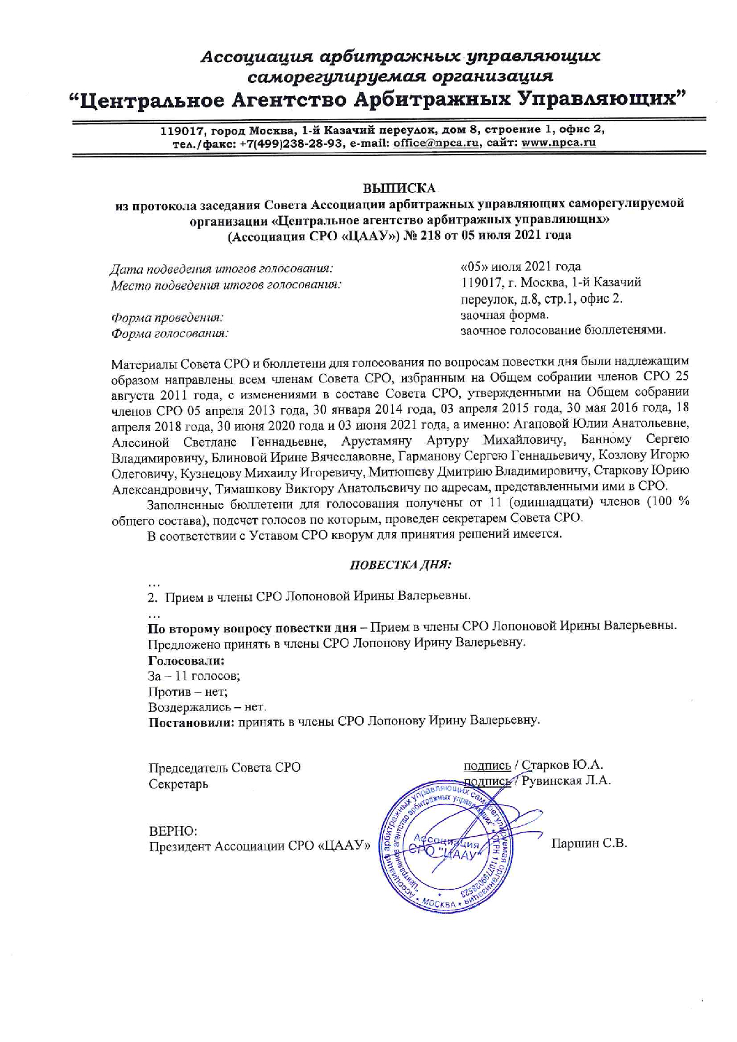 Член Саморегулируемой организации Ассоциации «Центральное агентство арбитражных управляющих» (Ассоциация СРО «ЦААУ»).