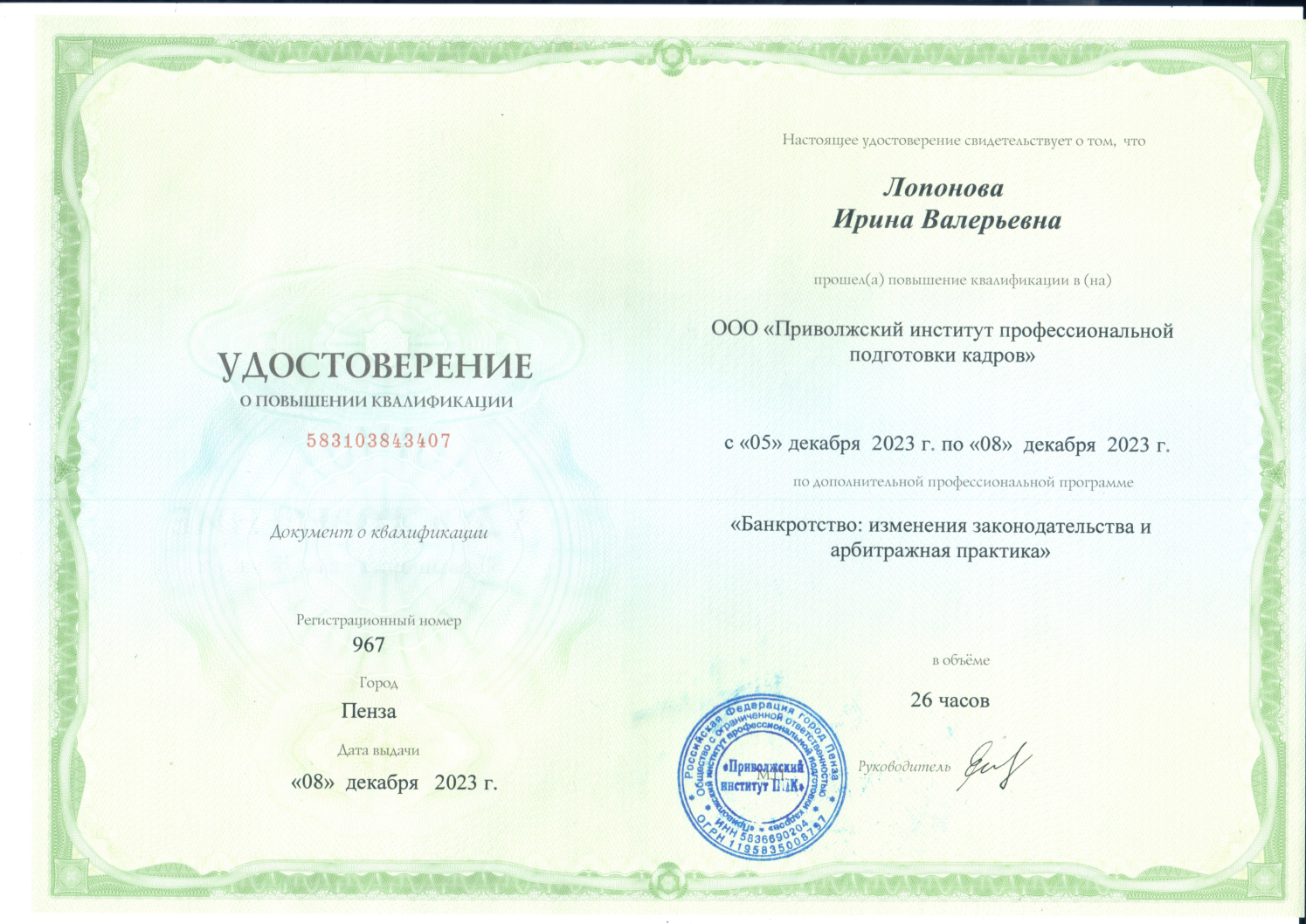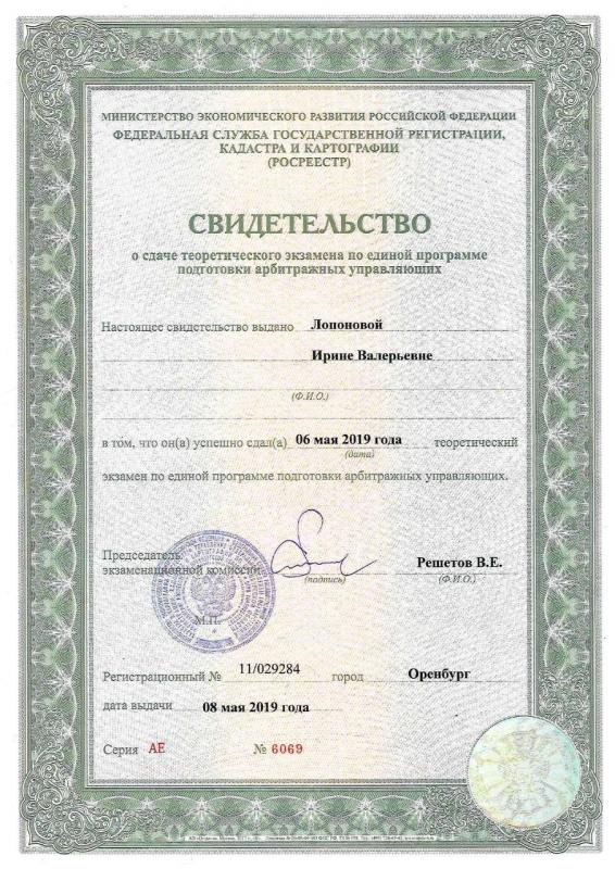 Арбитражный управляющий Лопонова Ирина Валерьевна