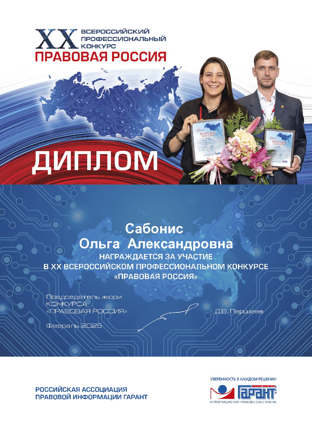 Меня зовут Ольга Александровна Сабонис, и я оказываю услуги в г. Оренбурге с 2018 года. За это время я накопила огромный опыт и профессионализм в области гражданского права. Моя особенность заключается в том, что я никогда не оставляю своего клиента один на один с проблемой, всегда стремлюсь достичь желаемого или приемлемого результата. Мне приходилось решать вопросы самого разнообразного характера в сфере гражданского и административного права. Я представляла интересы граждан в имущественных, наследственных, семейных и административных спорах. В своей работе, я руководствуюсь принципом высокой ответственности перед клиентом, который доверяет мне, практически, свою судьбу. Я предлагаю помощь и консультацию по юридическим вопросам, включая сложные дела и споры, и всегда применяю нестандартный подход к каждому делу. Я лично отвечаю за решение юридических вопросов и строго соблюдаю конфиденциальность. За время своей профессиональной деятельности я помогла более 500 клиентам, успешно решив множество сложных задач. Я предлагаю возможность получить юридическую консультацию по телефону или через мессенджеры, где я смогу ознакомиться с вашей ситуацией и определить пути ее решения. О стоимости моих услуг я смогу сориентировать вас после ознакомления с задачей. Кроме того, я всегда рада встретиться с вами лично в офисе для проведения консультации. Звоните! 📞 Я буду рада помочь вам! С отзывами обо мне вы можете ознакомиться в сети интернет. ⚔️, Консультации, представление интересов в суде, сопровождение, составление исковых заявление, жалоб и других документов 🔸 имущественные споры: взыскание долга, признание сделки недействительной, и другие споры; 🔸семейные споры: расторжение брака, раздел имущества, взыскание алиментов (уменьшение, увеличение, перерасчет), лишение родительских прав, установление и оспаривание отцовства, определение места жительства и порядка общения с ребенком; 🔸наследственные споры: помощь в оформлении наследства раздел наследства, оспаривание и признание завещания недействительным, признание наследника недостойным, установление факта принятия наследства; 🔸выселение из квартиры, признание права собственности на недвижимость, возмещение ущерба причиненного заливом квартиры, определение порядка пользования квартирой, выделение доли в натуре; 🔸установление юридически значимых фактов; 🔸обжалование решений, действий (бездействия) государственных и иных органов; 🔸 сопровождение банкротства физических лиц; 🔸отмена и изменение судебных решений. Консультация 💰 от 2 500 ₽ Представительство в суде 🏛️ "под ключ": от 50000 рублей (расторжение брака) от 100 000 ₽ - в других спорах Представление интересов в различных учреждениях 🏢от 7 500 ₽ Сопровождение сделки купли-продажи недвижимости🏠 от 22 000 ₽ Составление📜: жалоба от 5000 ₽ ходатайство от 3000 ₽ исковые заявления от 15 000 ₽ другие заявлений от 4 500 ₽ договор купли-продажи - от 7000 р договор дарения от 7000 р Предоставляю рассрочку 🕦 без банка на индивидуальных условиях
