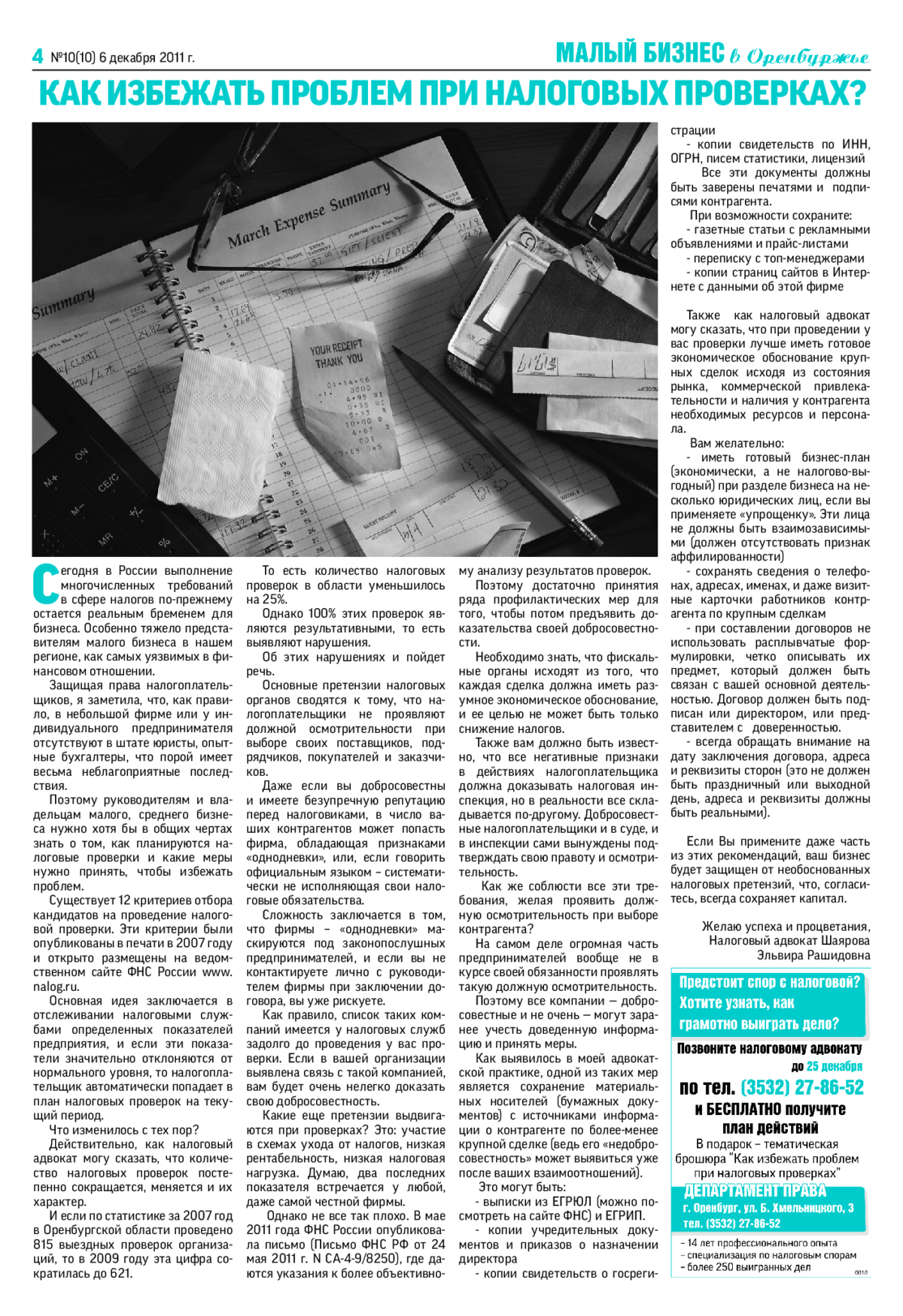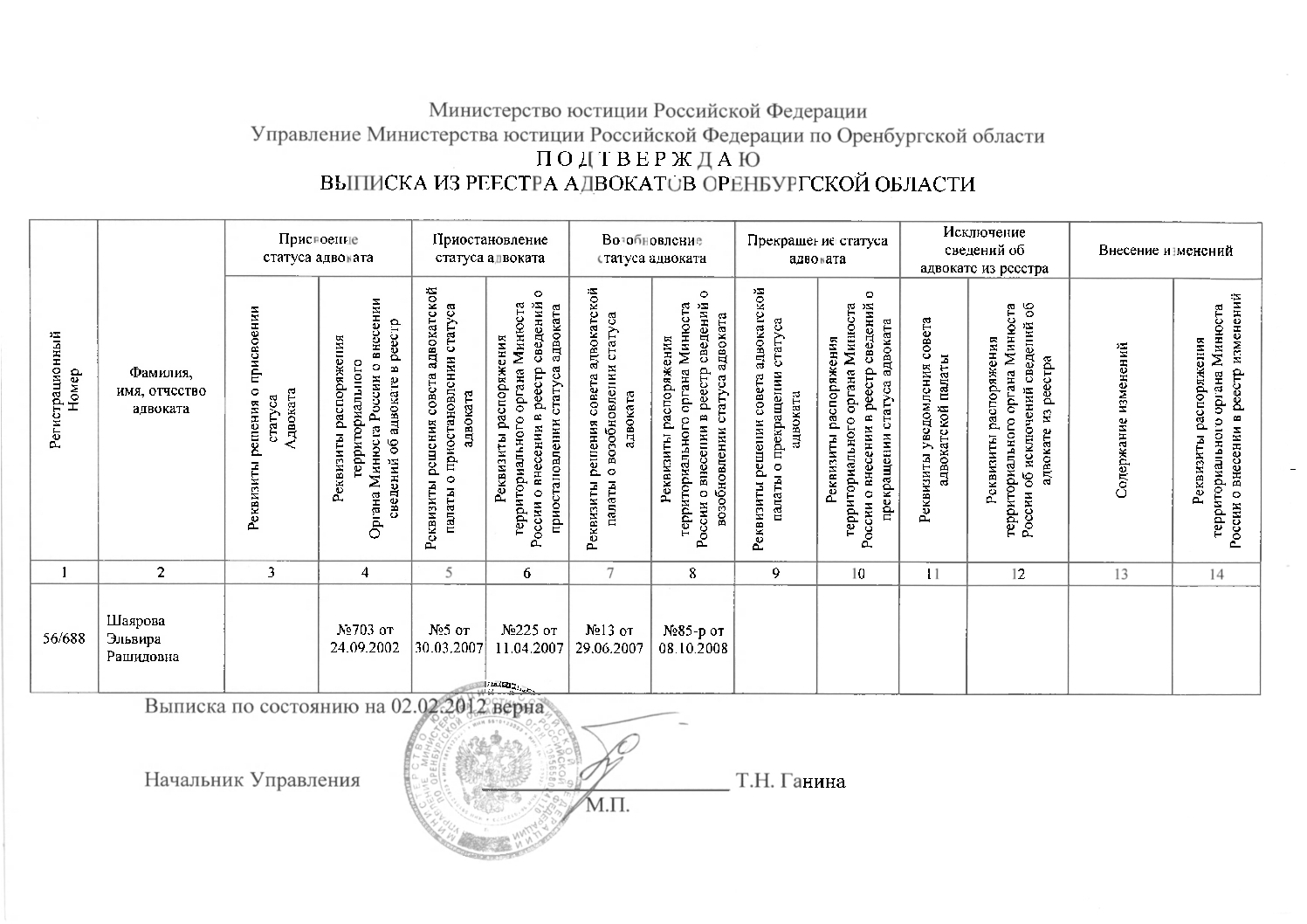 Стаж работы с 1994 года, статус адвоката. Постоянное повышение квалификации. Большой опыт работы в арбитражных судах. Всегда только лично представляю интересы юридических лиц и предпринимателей. Являюсь рецензентом ведущих юридических ВУЗов области -ОГУ, МГЮА.