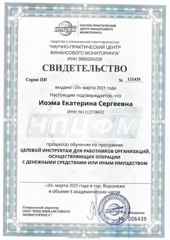 Целевой инструктаж ПОД/ФТ/ФРОМУ (115-фз) - Воронеж