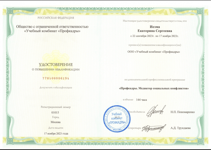 Я юрист и профессиональный медиатор. Моя цель — обеспечить защиту и поддержку клиентов в сложных правовых ситуациях. Всегда предлагаю наилучшее решение с учетом задач, обстоятельств и бюджета. Мои услуги для юридических лиц:
