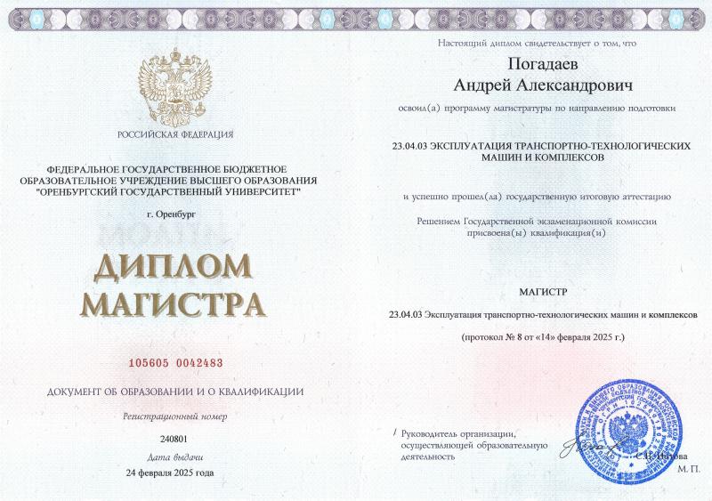 Оренбургский государственный университет — Транспортный факультет — Оренбург Магистр