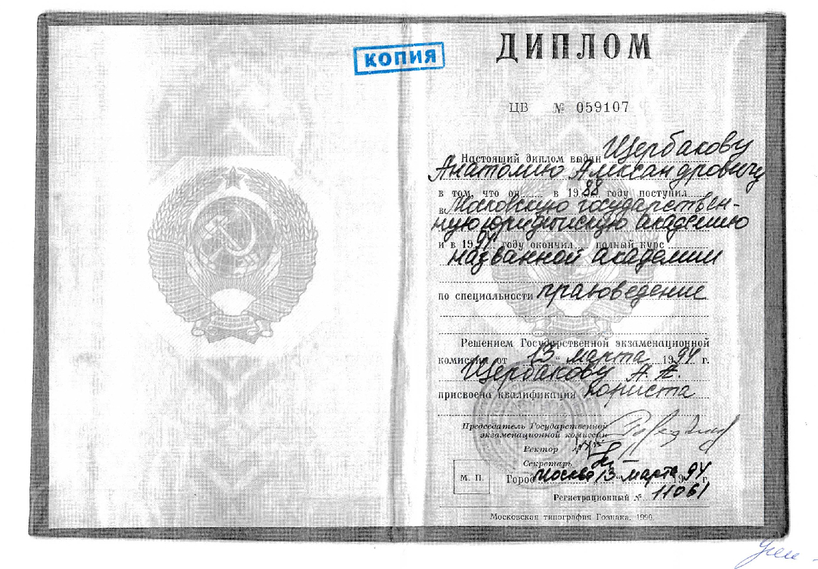 Список судебных дел в карточке юриста может быть не полным и зависит от того, указан ли юрист Щербаков Анатолий Александрович в деле или нет