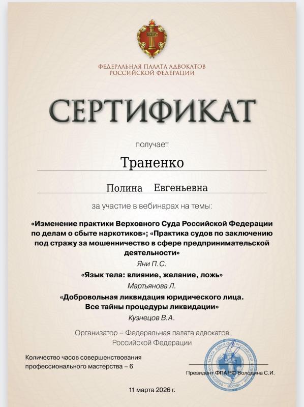 Полина Евгеньевна специалист своего дела! Помогла с решением вопроса по уголовному делу. Подробные консультации и полное сопровождение.... Читать далее