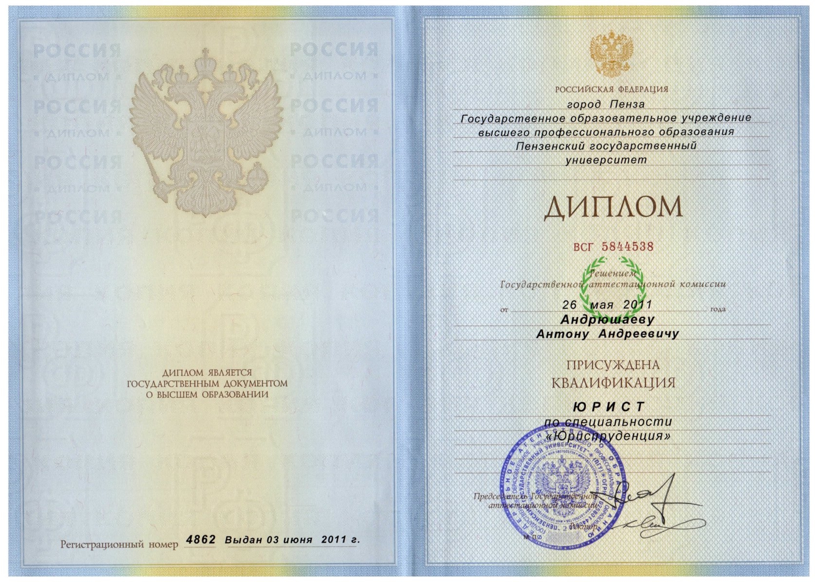 Образование; Окончил факультет экономики и управления Пензенского государственного университета по специальности «Государственная служба и управление» и юридический факультет Пензенского государственного университета по специальности «Юриспруденция». Опыт работы по юридической специальности в коммерческих организациях, проходил службу в органах следственного комитета Российской Федерации.Организация работы и руководство региональным подразделением САР в Пензенской области.