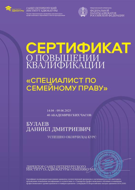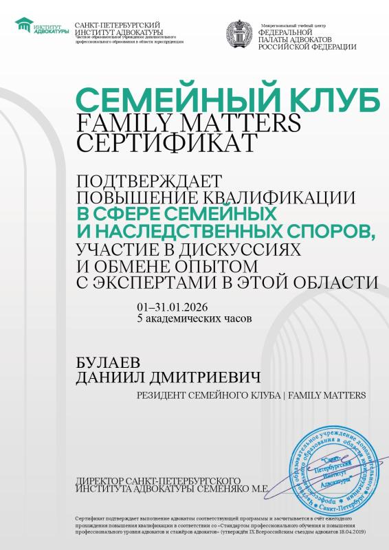 Юридический кабинет Булаева Д.Д. предлагает услуги в сфере: