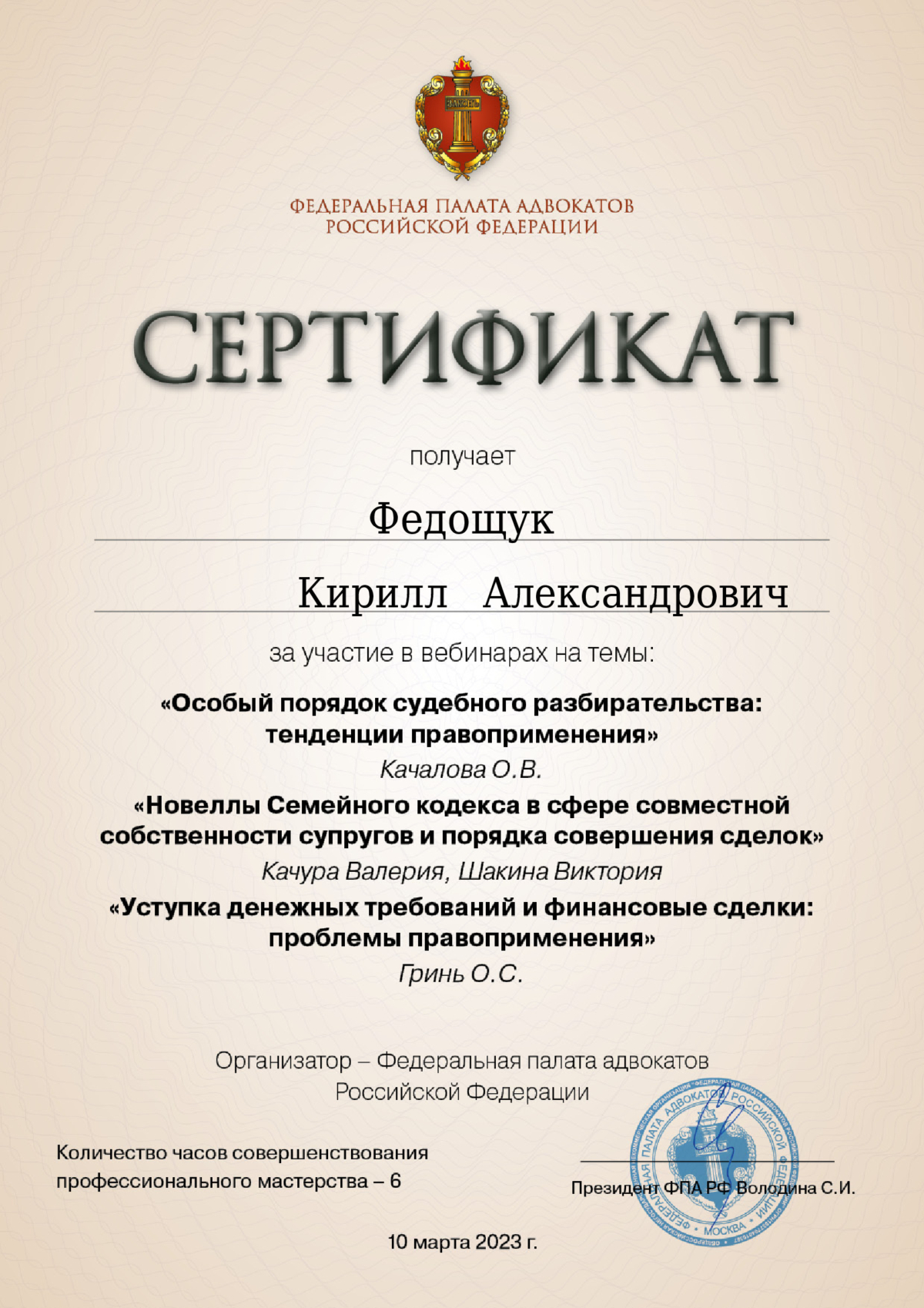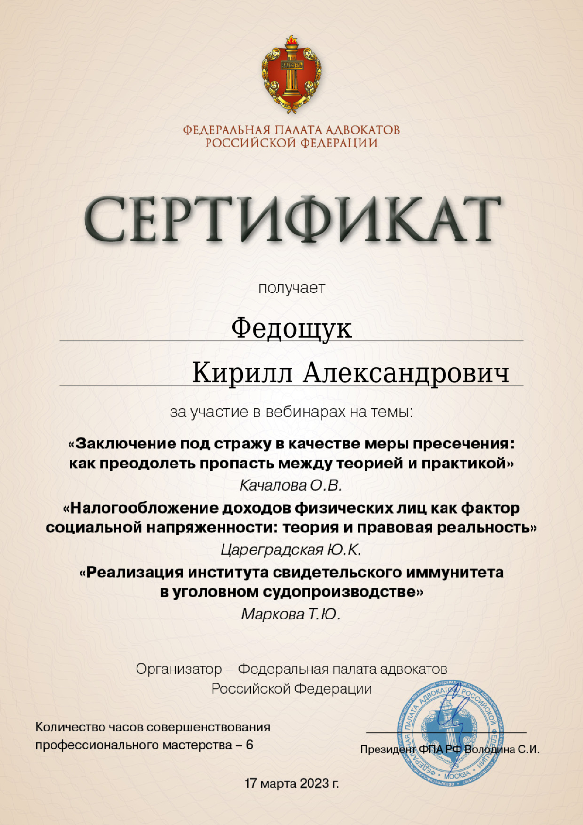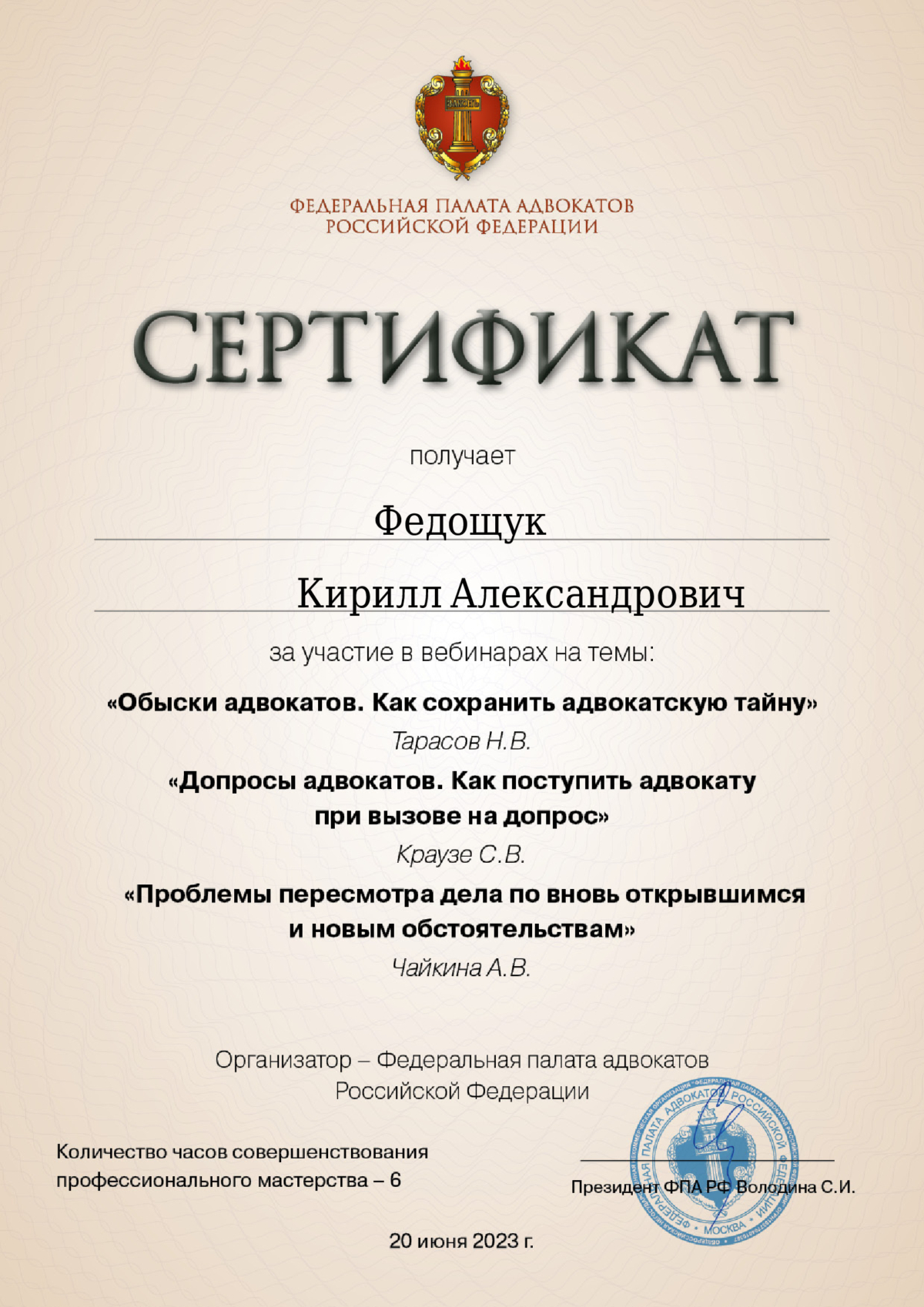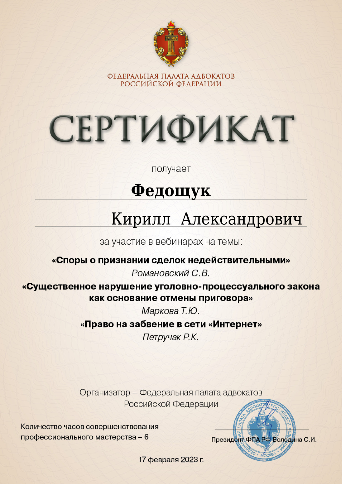 Адвокат по уголовным, арбитражным и гражданским делам. Общий стаж юридической практики более 16 лет. До начала адвокатской деятельности 5 лет работал в судебной системе России. Осуществляю деятельность в составе Адвокатской палаты Свердловской области. Регистрационный номер 66/2882 в реестре адвокатов Свердловской области. За время адвокатской практики участвовал в производстве по сотням уголовных и гражданских дел. Имеется успешный опыт выработки эффективных стратегий и тактик для достижения наиболее благоприятного правового результата. Высокий процент уголовных дел с моим участием оканчивается прекращением, в том числе по реабилитирующим основаниям, переквалификацией в сторону смягчения либо назначением наказания, не связанного с лишением свободы, в тех случаях, когда гособвинение настаивает на назначении лишения свободы с его реальным отбыванием в колонии. Имеются в практике и случаи вынесения оправдательных приговоров.