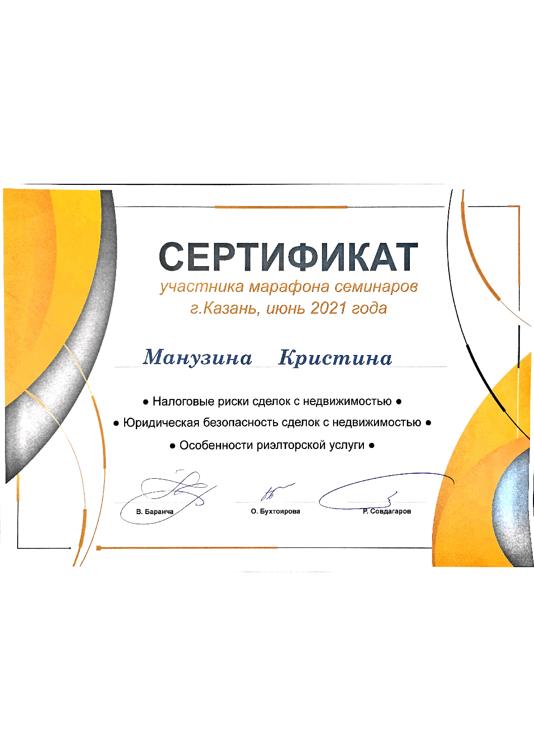 Практикующий юрист в сфере гражданского и семейного права. Эксперт по сделкам с недвижимостью. Официальный партнер Домклик ПАО Сбербанк. Основные профессиональные качества:ответственность, пунктуальность, обязательность и педантичность, профессиональный подход к решению проблемы клиента "под ключ". Коммуникабельность, постоянное повышение уровня профессионального образования.