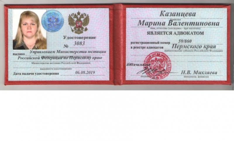 Список судебных дел в карточке адвоката может быть не полным и зависит от того, указан ли адвокат Казанцева Марина Валентиновна в деле или нет