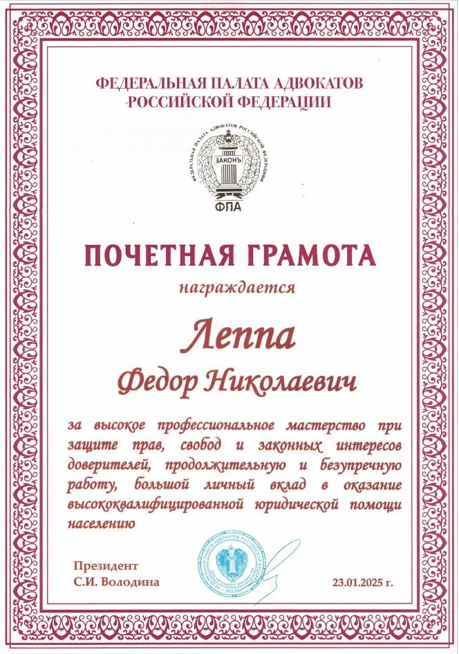 Список судебных дел в карточке адвоката может быть не полным и зависит от того, указан ли адвокат Леппа Федор Николаевич в деле или нет