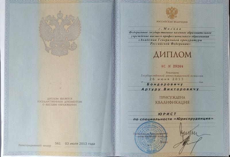 Список судебных дел в карточке юриста может быть не полным и зависит от того, указан ли юрист Бондарович Артур Викторович в деле или нет