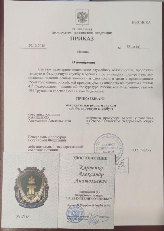 С 2002 по 2024 г.г. работал в органах прокуратуры РФ, с 2024 г. адвокат Адвокатской палаты Ставропольского края. Специализация - уголовное право. В прокуратуре РФ осуществлял надзор за органами следствия и дознания, органами, осуществляющими оперативно-розыскную деятельность, осуществлял надзор за уголовно-исполнительной инспекцией, курировал государственное обвинение в судах. Советник юстиции в отставке. Защищаю, зная систему изнутри.