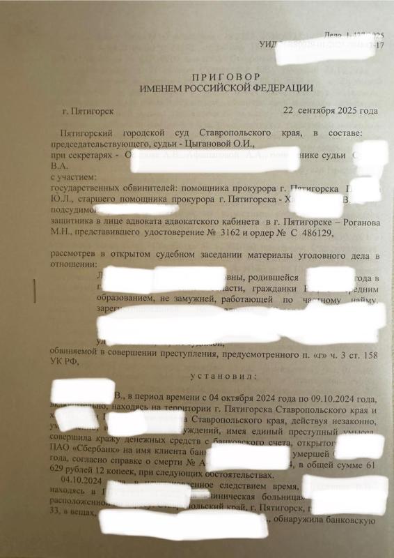 Если Вы попали в тяжелую жизненную ситуацию, стали «жертвой» обстоятельств, растеряны и не находите выхода – обращайтесь за помощью. Разносторонний юридический опыт позволяет адвокату не просто выстраивать результативную тактику ведения дела по защите Доверителя, но и добиваться исхода, благоприятного для клиента. За квалифицированной правовой помощью могут обращаться жители г. Пятигорск, Минеральные Воды, Георгиевск, Ессентуки, Железноводск и других городов и областей Российской Федерации, адвокат имеет право работать в других регионах Российской Федерации.