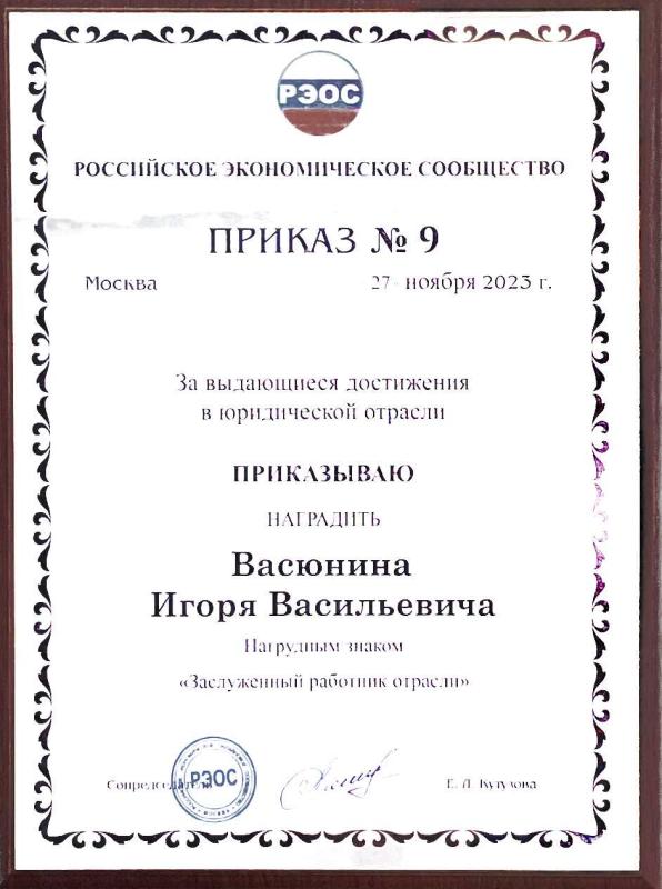 Общий стаж работы в правоприменительной деятельности более 50 лет. Награжден почетными грамотами ФПА РФ, МРКА, медалями "За заслуги в защите прав и свобод граждан" 1,2 степени, нагрудным знаком "Почетный Адвокат России".