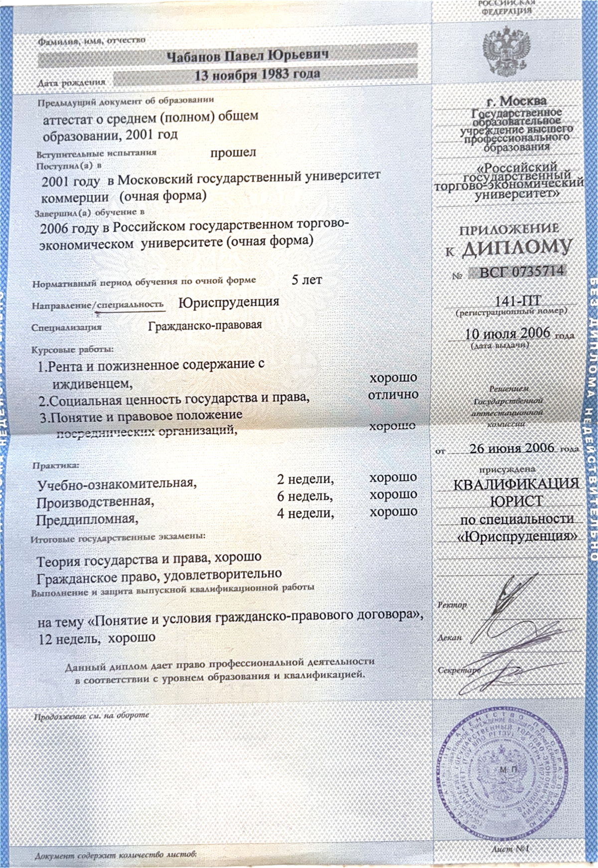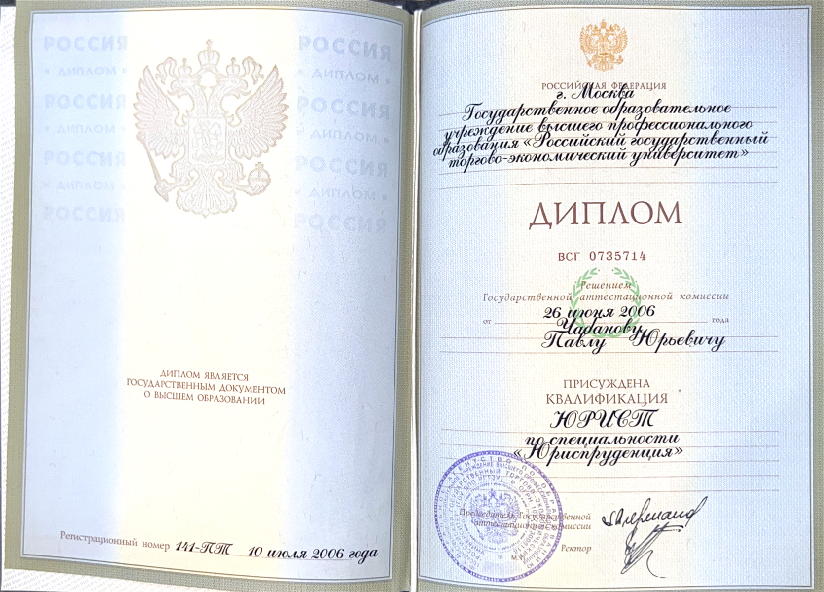 Образование: высшее юридическое и экономическое.