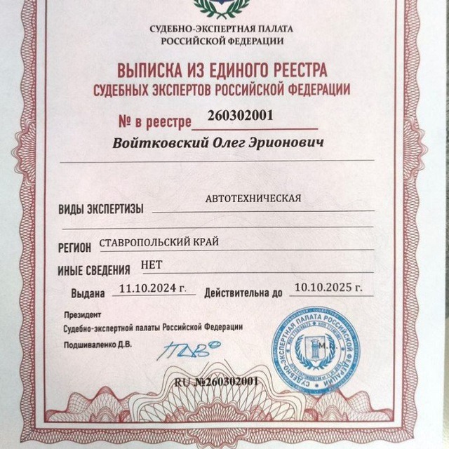 Адвокат, судебный эксперт по специальности 13.1 “Исследование обстоятельств ДТП”. Стаж работы следователем 20 лет. Полковник в отставке.