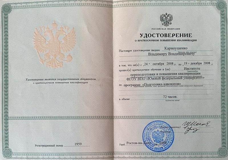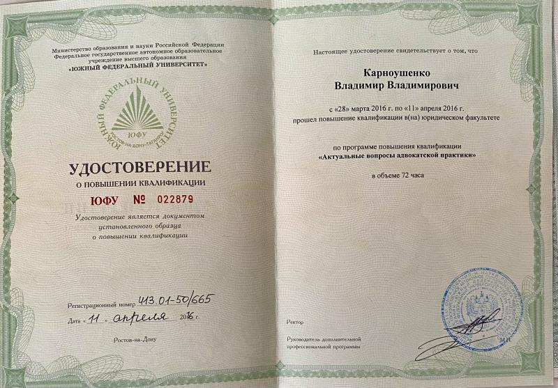 Юрист высшей квалификации. Ветеран правоохранительных органов. Офицер запаса ВС РФ, капитан таможенной службы в отставке. Юридический стаж работы более 20 лет. Способен решать любые правовые вопросы, вести дела любой категории сложности, по любой отрасли права, в том числе с участием иностранного элемента, в различных государственных (вне государственных, коммерческих, хозяйственных и т.п.), административно-исполнительных и судебных инстанциях различного уровня, с большим опытом ведения сложных переговоров, способен быстро реагировать на изменение обстановки, принимать нестандартные решения и нести за них ответственность.