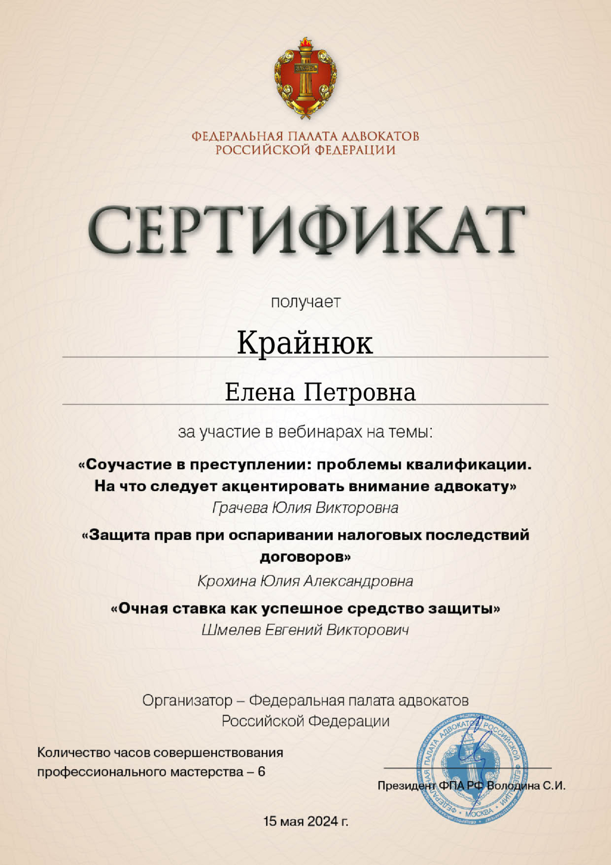 Общий юридический стаж – 33 года, из них в статусе адвоката – 30 лет.