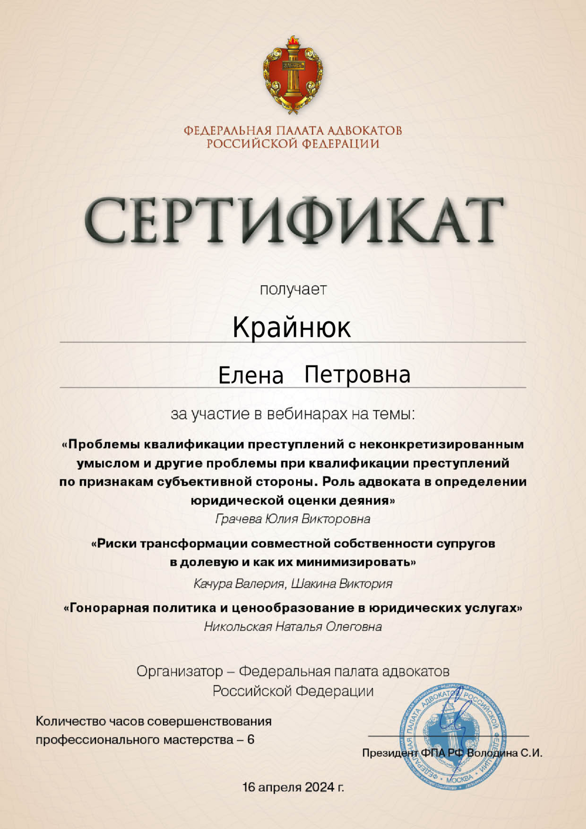 Щепун Ирина Ибрагимовна — действующий адвокат (реестровый номер 61/6101), член «Ассоциация юристов России», более трех лет проработала на государственных должностях в Арбитражном суде РО, поощрена Сенатором Российской Федерации за вклад в развитие системы бесплатной юридической помощи в РО. Подготовлено более 8 950 юридических документов, более 990 судебных процессов, взыскано более 100 млн Р. Оказываю юридическую помощь и защищаю интересы предпринимателей по арбитражным спорам, оказываю полное юридическое сопровождение бизнеса. Оказываю юридическую помощь и защищаю интересы граждан по семейным, наследственным, трудовым, земельным, административным и после ДТП, страховые с банками, КАСКО/ОСАГО, а также защищаю права потребителей, банкротство.