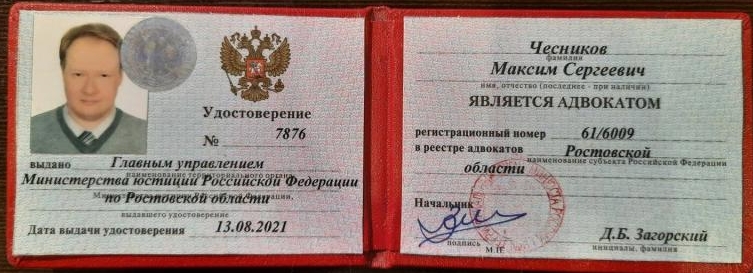 Подтверждено Минюст РФАдвокатСтатус адвоката: