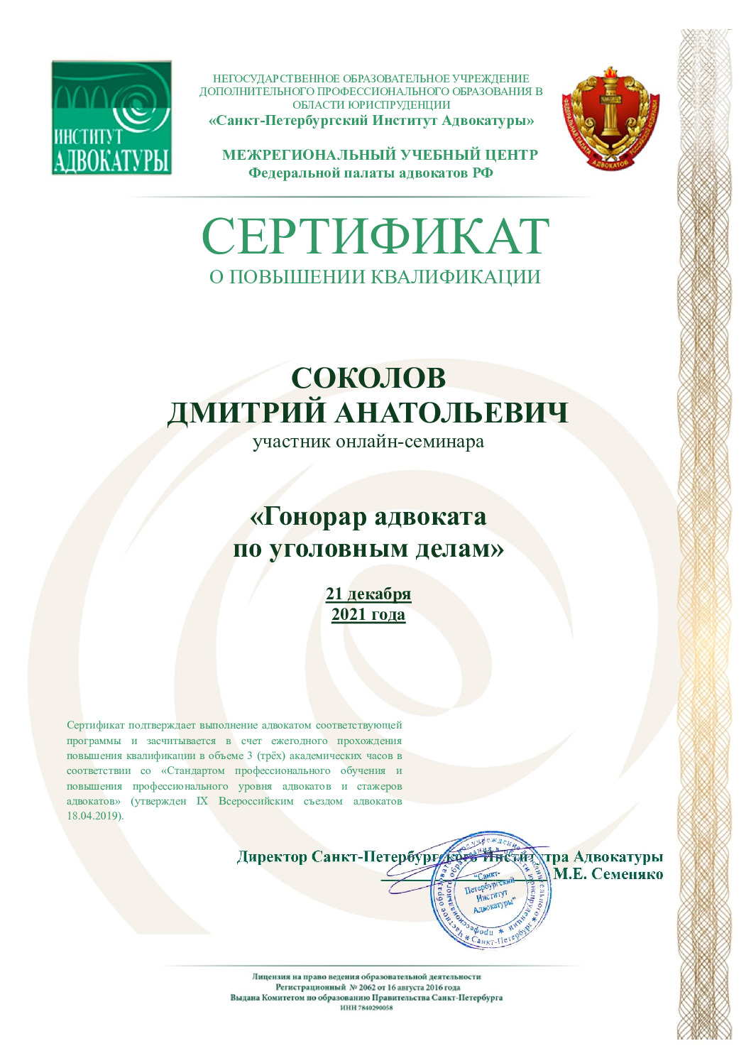 Имею 3 высших образования, юридическое, управленческое, психологическое, к.ю.н. 15 лет отработал в Академии ФСИН России на различных должностях, в том числе руководящих. Подполковник в отставке.